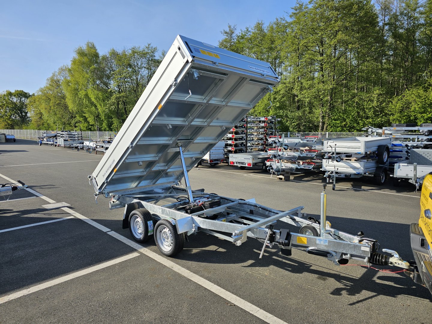 Art.Nr.HerstellerWM-MeyerWm Meyer 3 Seiten Kipper 319x186x33cm 3500KG E & Hand HKD 3531/186gebremst, mit Aluminiumbordwänden 330 mm hoch,zulässiges Gesamtgewicht: 3.500 kg,4 Seiten klapp- und aushängbar,Innenmaße (L x B x H):3.190 mm x 1.860 mm x 330 mmSie sparen: - inkl. MwSt (19%)VersandbedingungenLieferzeit Kann nur Abgeholt werdenStoßdämpfer für 100km/h:keine Stoßdämpfer 80km/hmit montiert 100km/h 199,-€Dieser Produktvariant ist leider nicht vorhanden. Stück In den Warenkorb