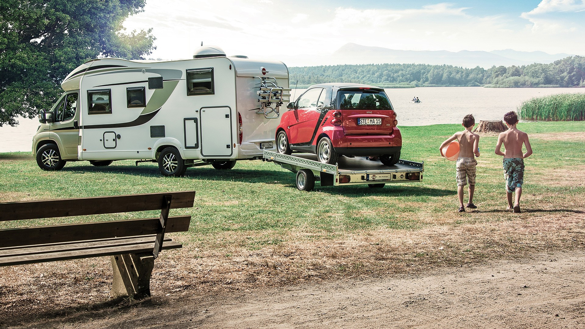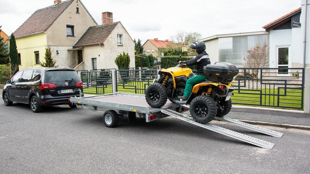 STEMA Carrier XL - SHA 1500KG 301x183 mit seitlicher Reling und zwei ALU-Auffahrrampen 260 cm inkl.100km/h