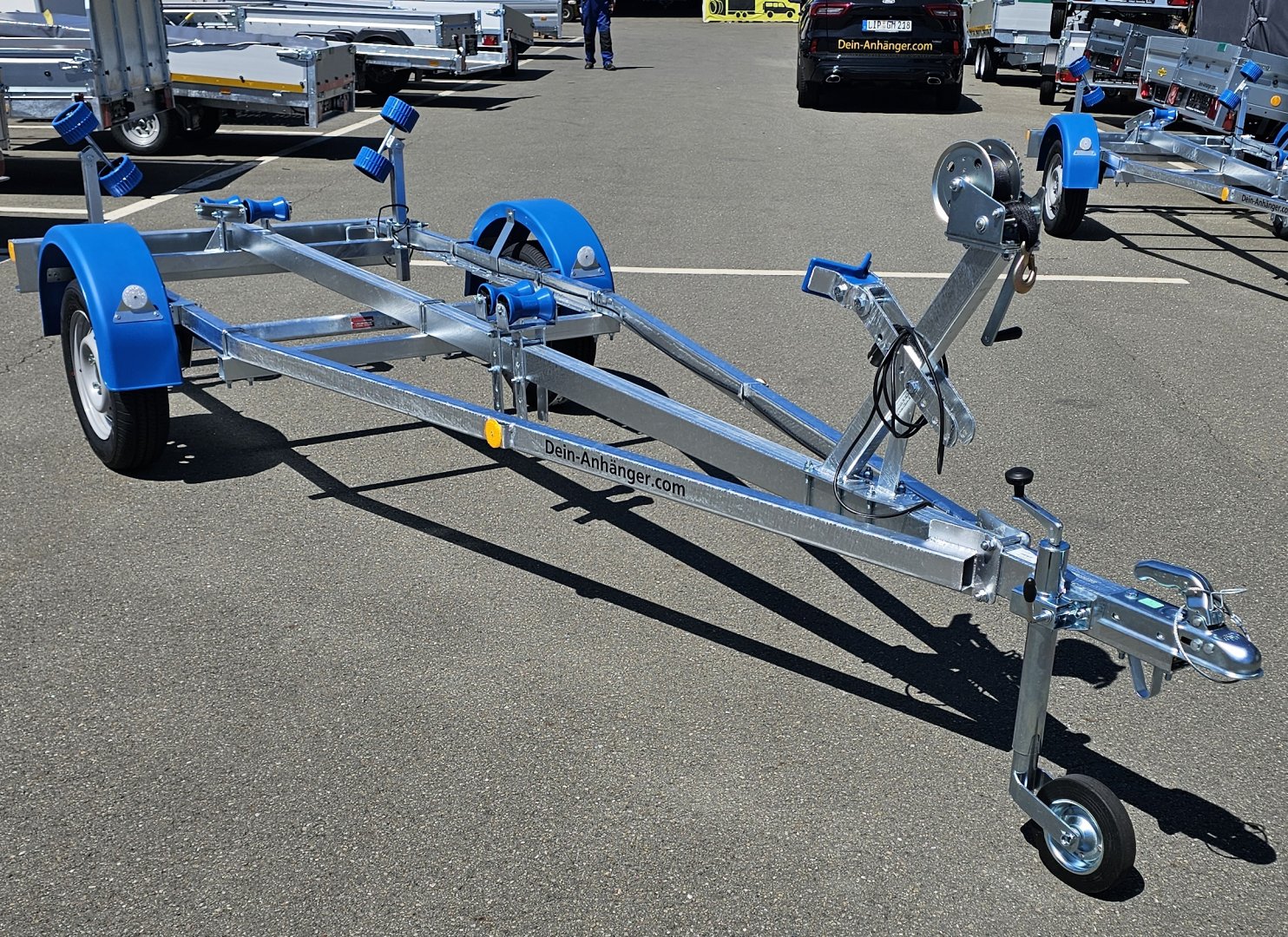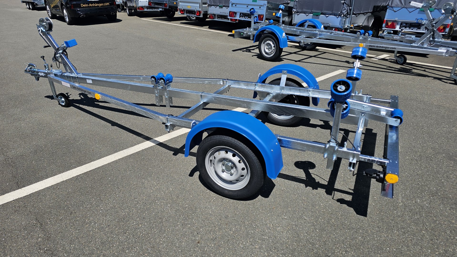 Für Boote von 3,10-5,50m (10- 18 Fuß) GN034 Name: Navy Modell: N7-17 Typ: Bootsanhänger Gesamtgewicht: 750 kg Nutzlast: 596 kg Innenabmessungen (L x B x H): 550 x 115 x 40 cm Außenabmessungen (L x B x H): 595 x 159 x 115cm Bereifung: 13"
