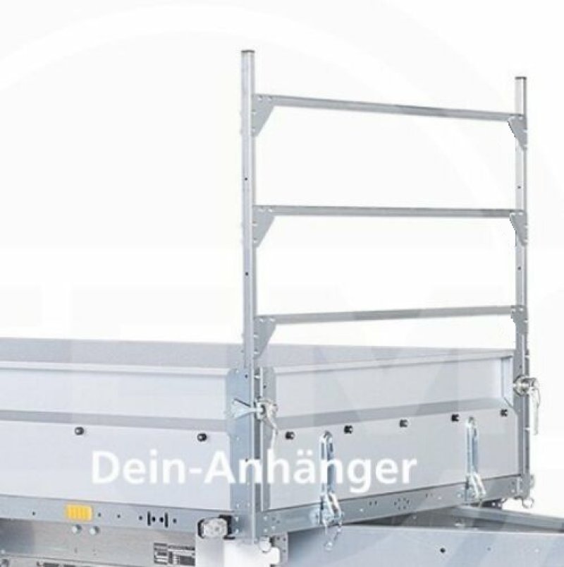 Das Leitergestell aus verzinktem Stahlblech ist ideal zum Transport von Baustoffen mit Überlänge geeignet. Bei der angegebenen Höhe wurde von der Bordwand bis zur Oberkante des Leitergestelles gemessen.