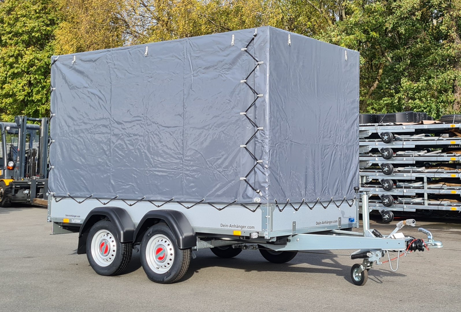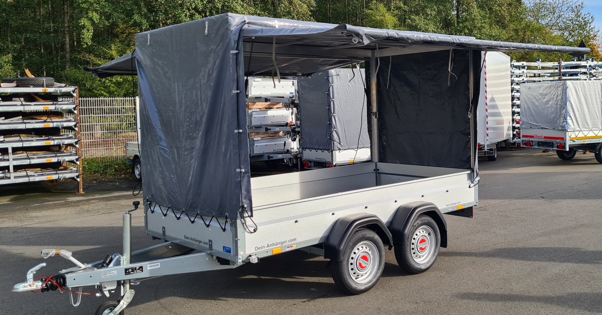 Verkaufsanhänger STEMA 2000 KG 301x153x 180cm Innenhöhe Anthrazit inkl. Alu Spriegel für Flohmarkt