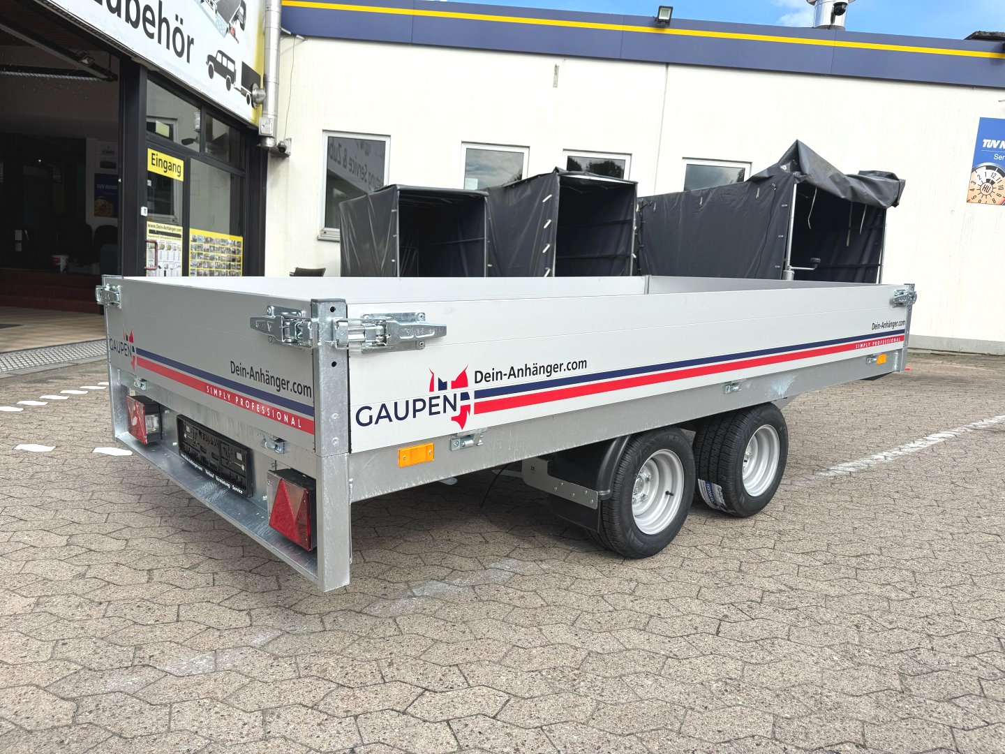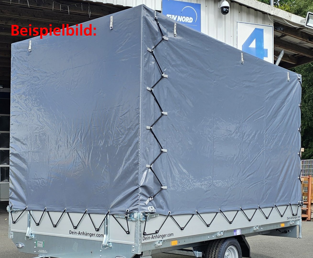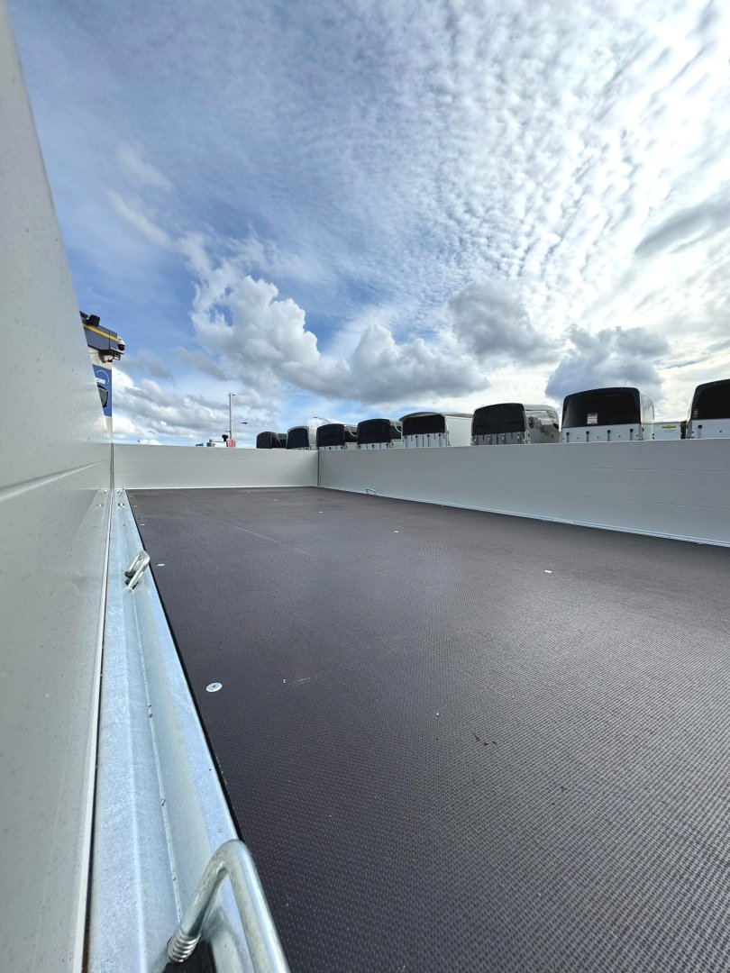 Gesamtgewicht 2000 kg Nutzlast 1540 kg Kasteninnenmaß 306 x 148 x 30 cm 8 Bindehaken im Boden, 8 Bindeösen außen am Rahmen, Automatikstützrad