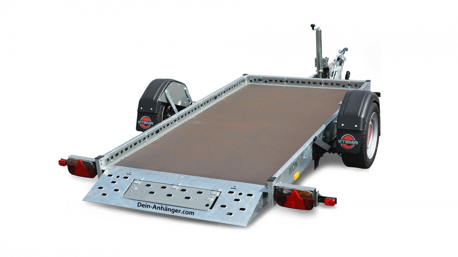 STEMA WOM XT 1300kg gebremst KG 251x128 Absenkanhänger mit Handpumpe, 3-seitige Reling