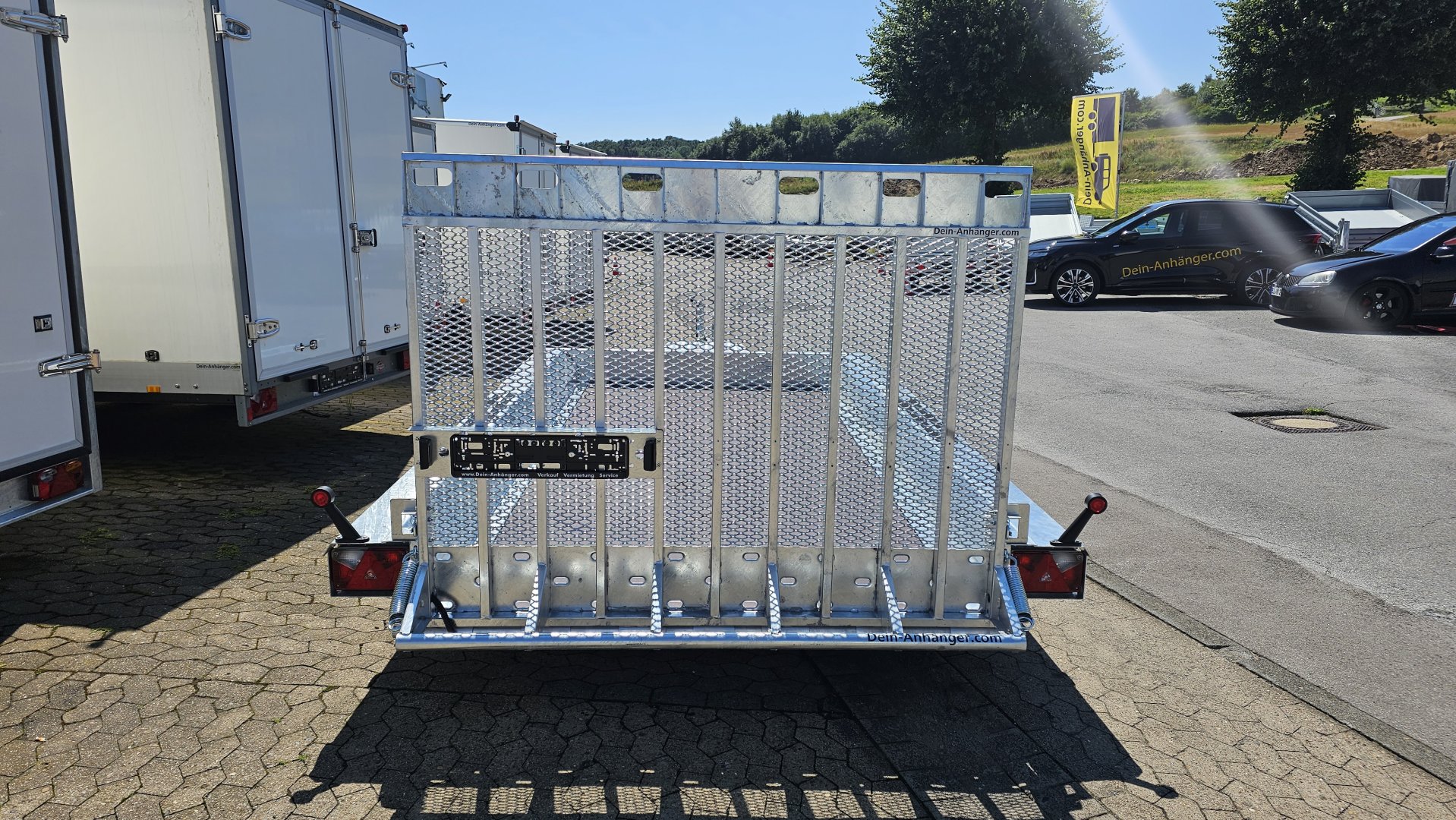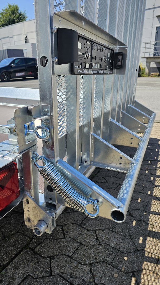 Robuster geschweißter Anhänger für den Transport von Baumaschinen und sehr schweren Materialien. Das originelle Design bietet die Möglichkeit,