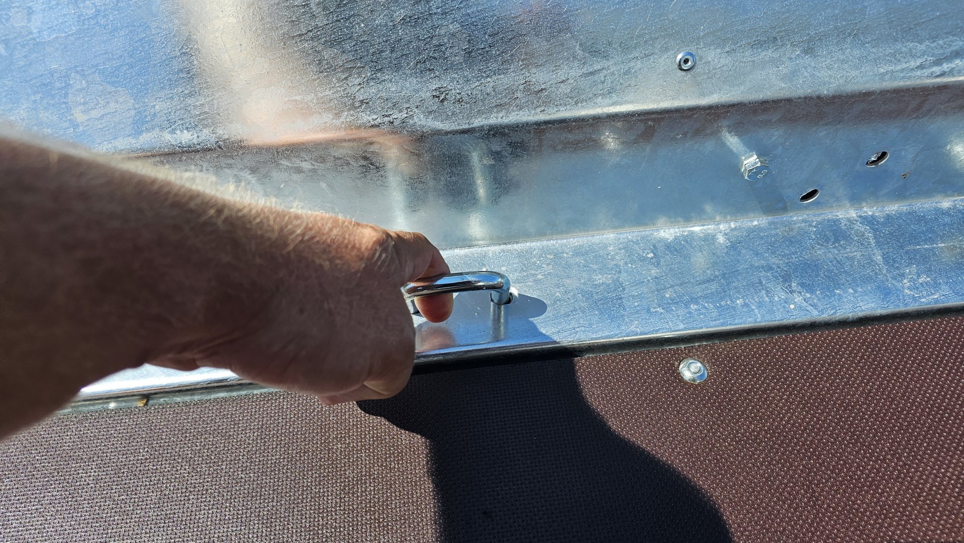 auf der gesamten Länge der mit Anti-Rutsch-Streifen ausgestatteten Seiten zu gehen. Geschweißter, tragender Rahmen aus geschlossenen Stahlprofilen.