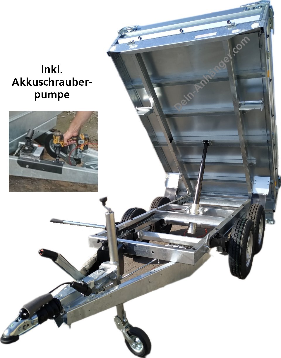 Kipper N27-256-2 2700 kg 256x148x30cm Handpumpe & Akkuschrauberpumpe Metallboden Pkw Anhänger Neptun