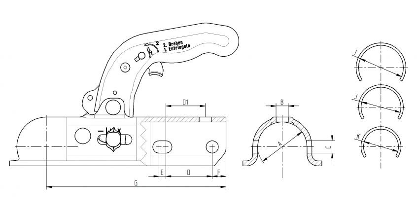 KNOTT Kugelkupplung K30U bis 3000 kg, Ausf. universal Ø35/Ø40/Ø45/Ø50 mm A 6E0350.101