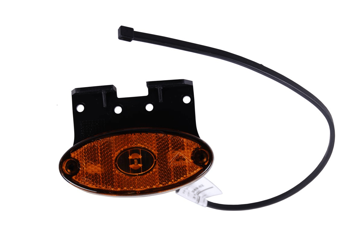 Aspöck - Flatpoint II LED, Seitenmarkierungsleuchte gelb mit Rückstrahler, mit Halter 90° "Z" nach vorne, 500 mm DC-Flachkabel, DC-Verbinder