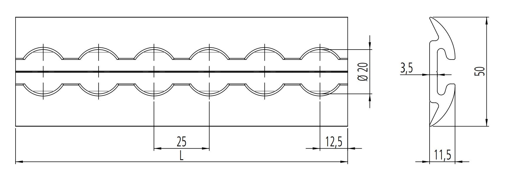 Airline-Zurschiene 3m Alu B50mm H11,5mm SN: 40581 - 7094102