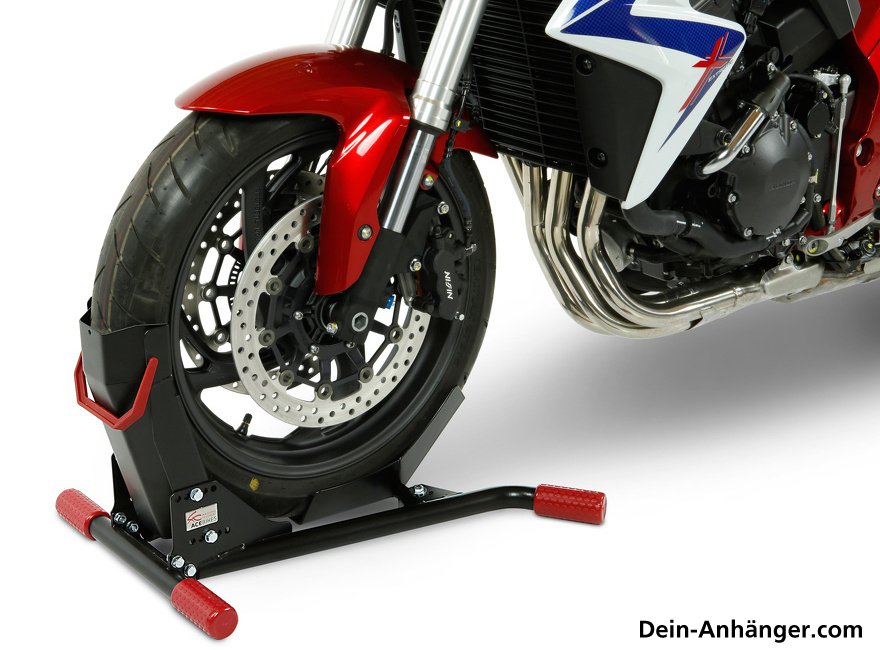 Eigengewicht des Motorrades wird es fest verankert. Mit dem montierten