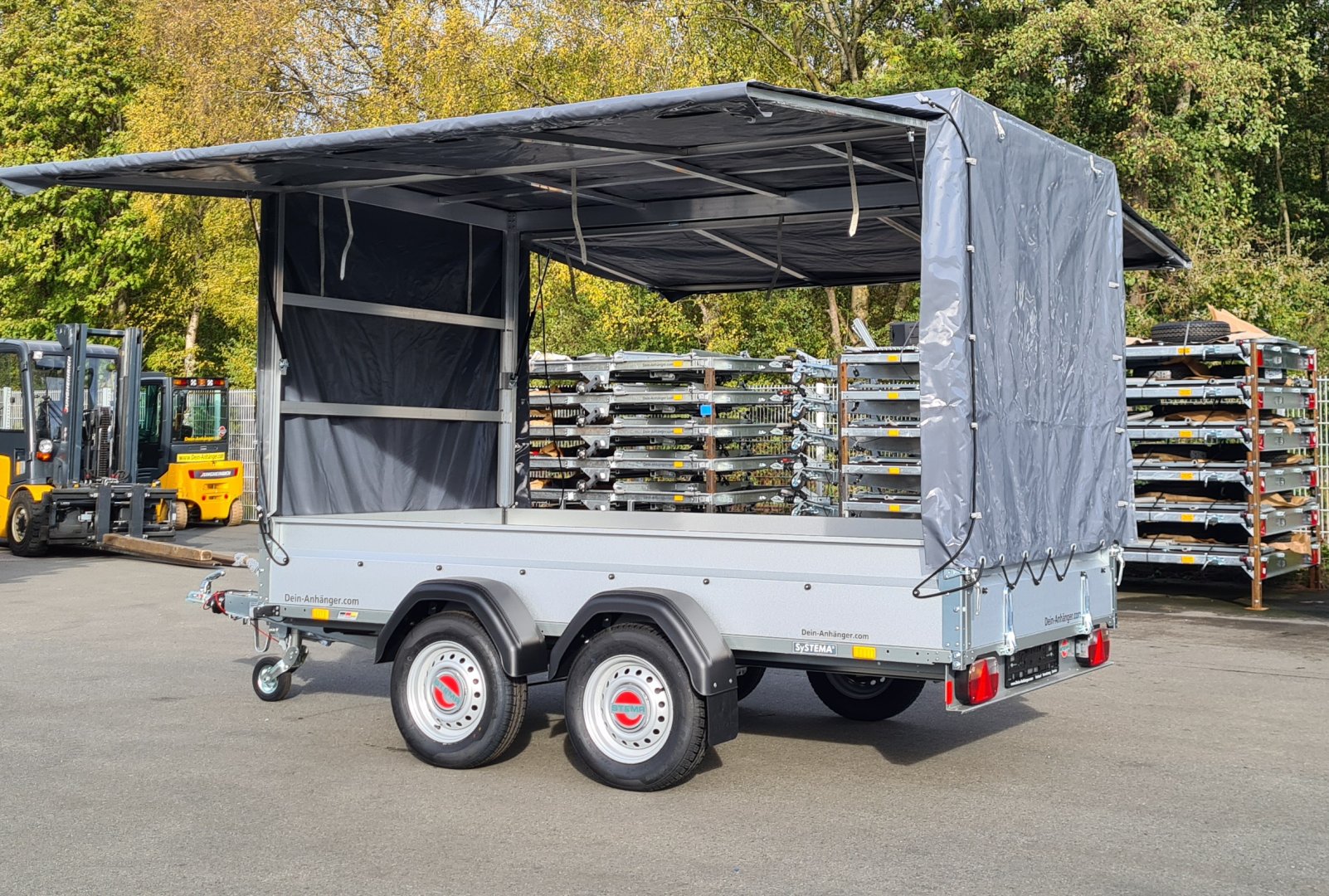 Verkaufsanhänger STEMA 2000 KG 301x153x 180cm Innenhöhe Anthrazit inkl. Alu Spriegel für Flohmarkt