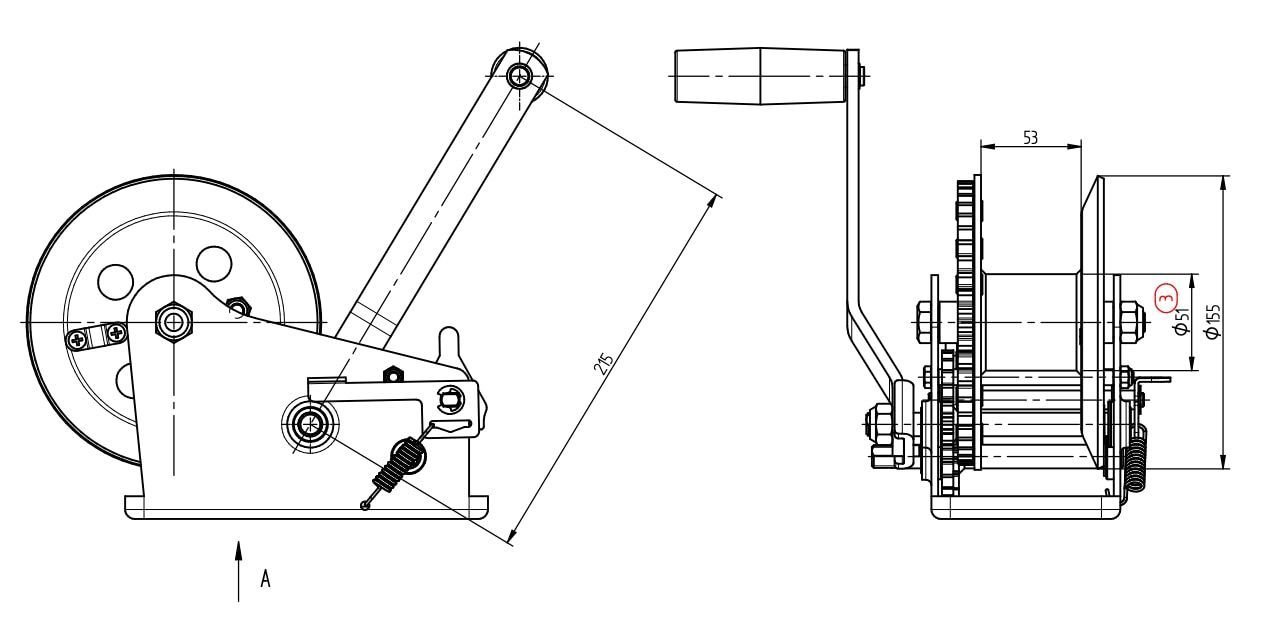 Knott Sicherheits Seilwinde 1135kg für Abroll Automatik & Lastdruckbremse Gehäusefarbe kann blau oder schwarz sein, keine Farbe wählbar