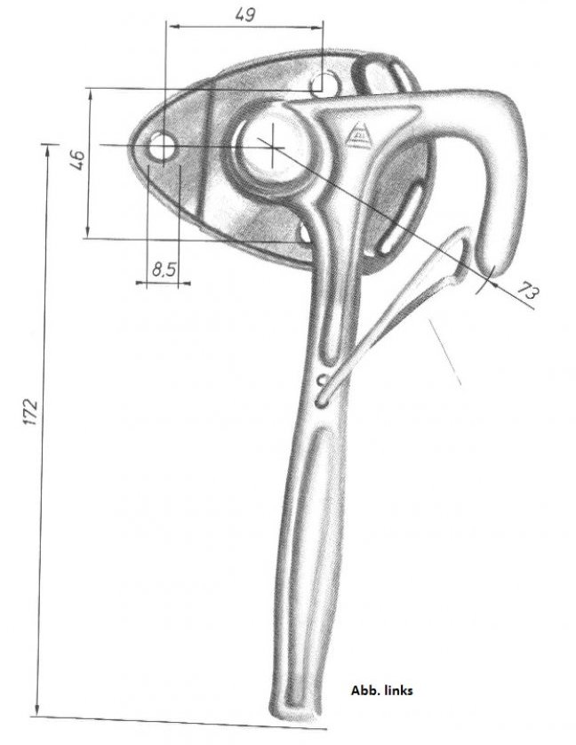 Winkelhebelverschluss rechts, Größe 1, Ø 16 mm, mit Federsicherung, Hebel 172 mm, verzinkt Art.-Nr. 20055