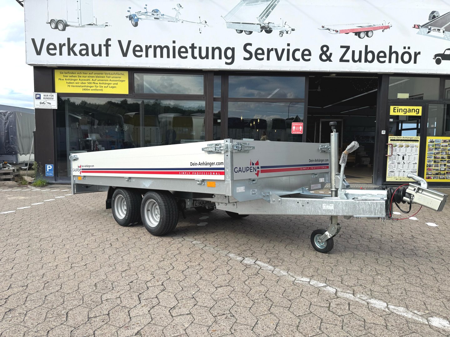 Gesamtgewicht 2000 kg Nutzlast 1540 kg Kasteninnenmaß 306 x 148 x 30 cm 8 Bindehaken im Boden, 8 Bindeösen außen am Rahmen, Automatikstützrad